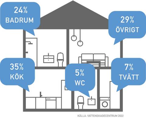 ● Enligt statistik från svenska försäkringsbolag anmäls runt 90 000 vattenskador årligen i Sverige, där kostnaden uppgår till cirka 12 miljarder SEK per år.